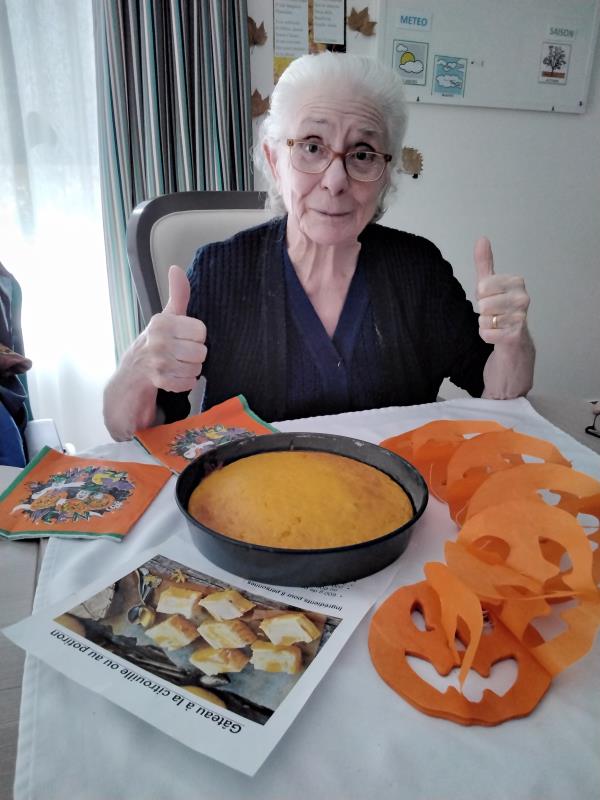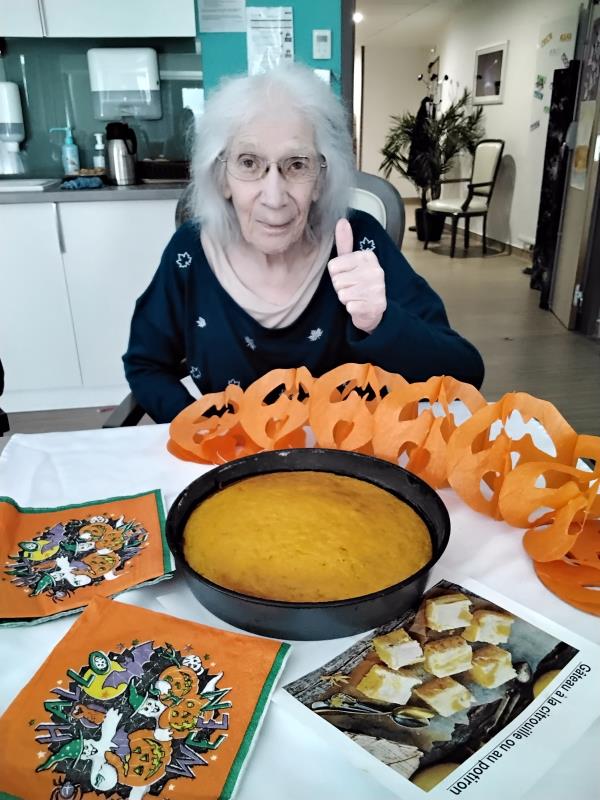 À l’occasion d’Halloween, les résidents du PASA ont participé à un atelier cuisine convivial et gourmand. Encadrés par Marie, psychomotricienne, et Cathy, ASG. Ils ont mis la main à la pâte pour préparer un délicieux gâteau au potiron.