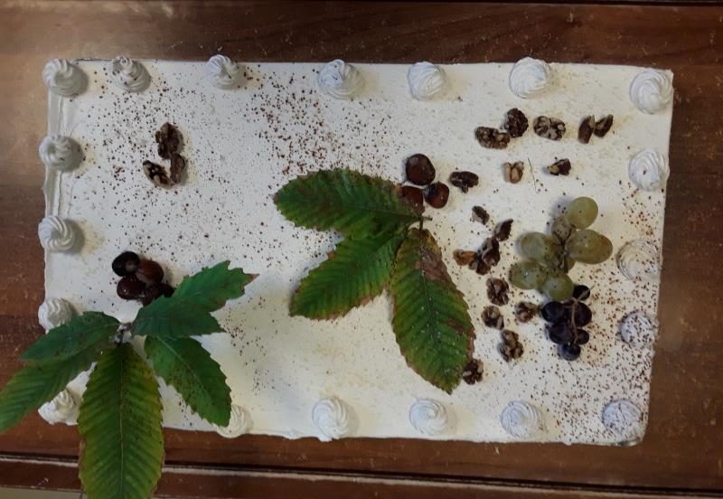 Pour prolonger ce moment gourmand, Émilie, notre cheffe cuisinière, et son équipe avaient préparé un gâteau aux couleurs de l’automne, décoré avec soin et parfumé au marron. Une véritable œuvre culinaire qui a ravi les papilles et apporté une touche sucrée à cette journée festive.