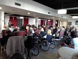Le mois d’octobre s’est clôturé en beauté avec la traditionnelle fête des anniversaires. Pour l’occasion, nous avons eu le plaisir d’accueillir « Antony Francisco », un artiste dont la voix a littéralement enchanté l’assemblée. Sa prestation a été un véritable moment de bonheur partagé : entre chants entraînants, danses improvisées et sourires complices, Antony a su créer une atmosphère chaleureuse et festive. Il n’a pas hésité à inviter certains résidents à danser, offrant des instants de convivialité qui resteront gravés dans les mémoires. Les résidents, leurs familles et le personnel ont tous été conquis par ce spectacle vivant.