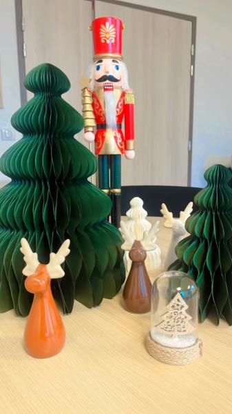 Certains l’auront peut-être déjà remarqué : la résidence commence doucement à revêtir ses couleurs de Noël. Jennifer, à l’accueil, a préparé les premières décorations avec beaucoup de soin et ouvre ainsi le bal des festivités ! Chaque année, elle fait preuve d’imagination et enrichit la décoration de nouvelles idées. Cette fois, elle a même testé un projecteur de flocons, offrant une ambiance particulièrement agréable.